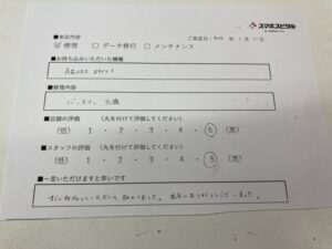 すぐに対応していただいて助かりました。本当にありがとうございました。