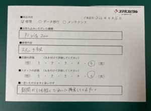 スマホスピタル神戸三宮 【お客様の声】PSVita2000のスティックを交換修理させていただきました。