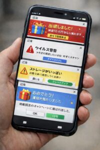 自覚がないまま迷惑広告を出すアプリがインストールされている恐れがあるので、