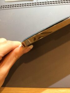 iPhoneを横から見ると中央部分に画面が浮いている形跡が確認されました。