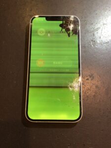 画面が割れているのはもちろんですが、液晶全体が緑色になり