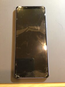 画面、そして保護フィルムにも割れがありかなり損傷が酷い状態でした。