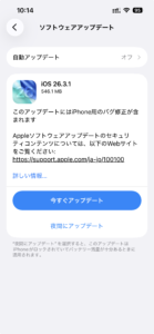 では、次回の大型アップデート前に配信されたiOS26.3.1の内容についてです。