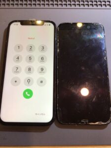 今回ご依頼いただいたのは、水没後に画面が緑色になってしまったiPhone12です。