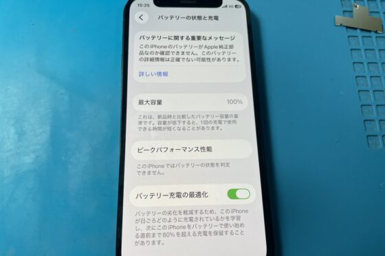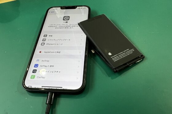 経年劣化によって充電持ちが悪くなったiPhone13のバッテリー交換修理
