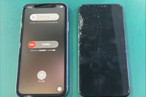 【iPhone XR】落とした衝撃により画面にヒビが入りブラックアウト。