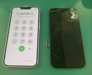 今回はiPhone 13の画面交換修理(重度)をご依頼いただきました。