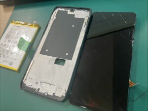 バッテリーを外して、表から割れている画面を剥がせば分解はおしまいです。