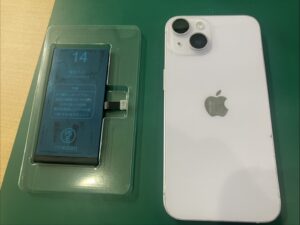 今回はiPhone 14のバッテリー交換修理をご依頼いただきました。