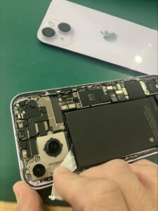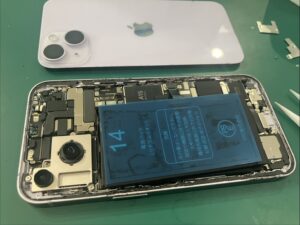 iPhone 14のバッテリー交換修理は動作確認も含め、作業時間1時間程で完了です。