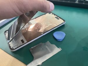 端末が十分に温まったら、工具ピックで画面を開いていきます。