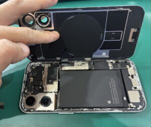 今回のiPhone 16はバックカメラの交換修理で直ります。
