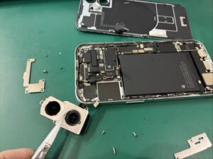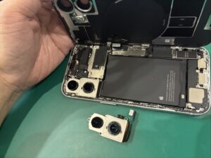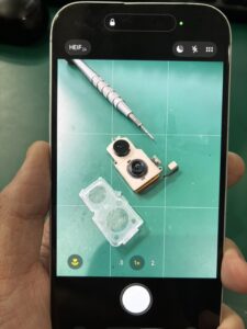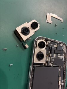 故障しているiPhone 16のバックカメラを取り出して分解はおしまいです。