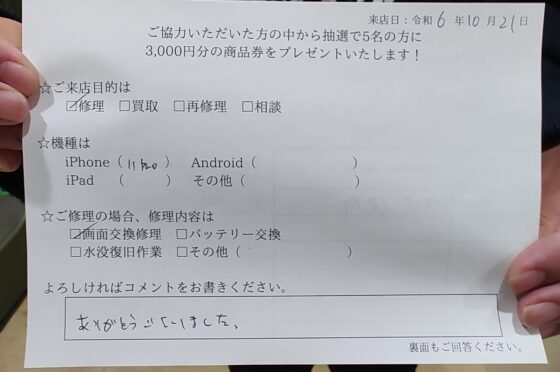 弊社の修理サービスをご利用いただいきましたお客様の声です。
