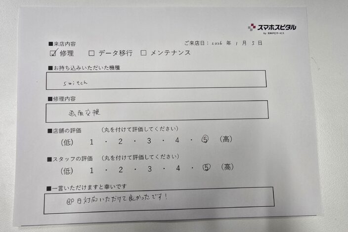 - スマホ修理、Switch修理、iPad修理など幅広い対応が可能
