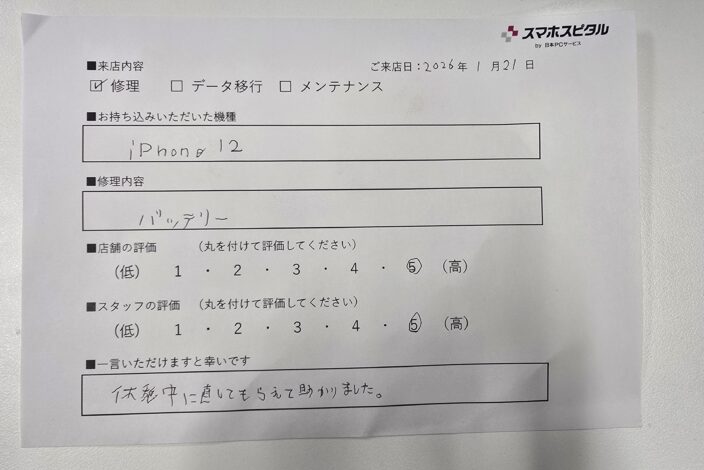 機種や修理箇所により異なりますが、最短15分~対応しています。目安としては30分~1時間弱で修理完了するものが多いです。充電口の交換や、カメラ修理など複数箇所の修理をご希望の場合でも、2〜3時間で修理可能となります。