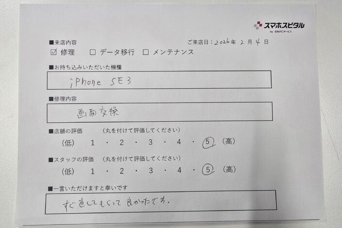 修理をご依頼いただく際には修理時間の目安をお伝えしておりますので、ご安心ください。