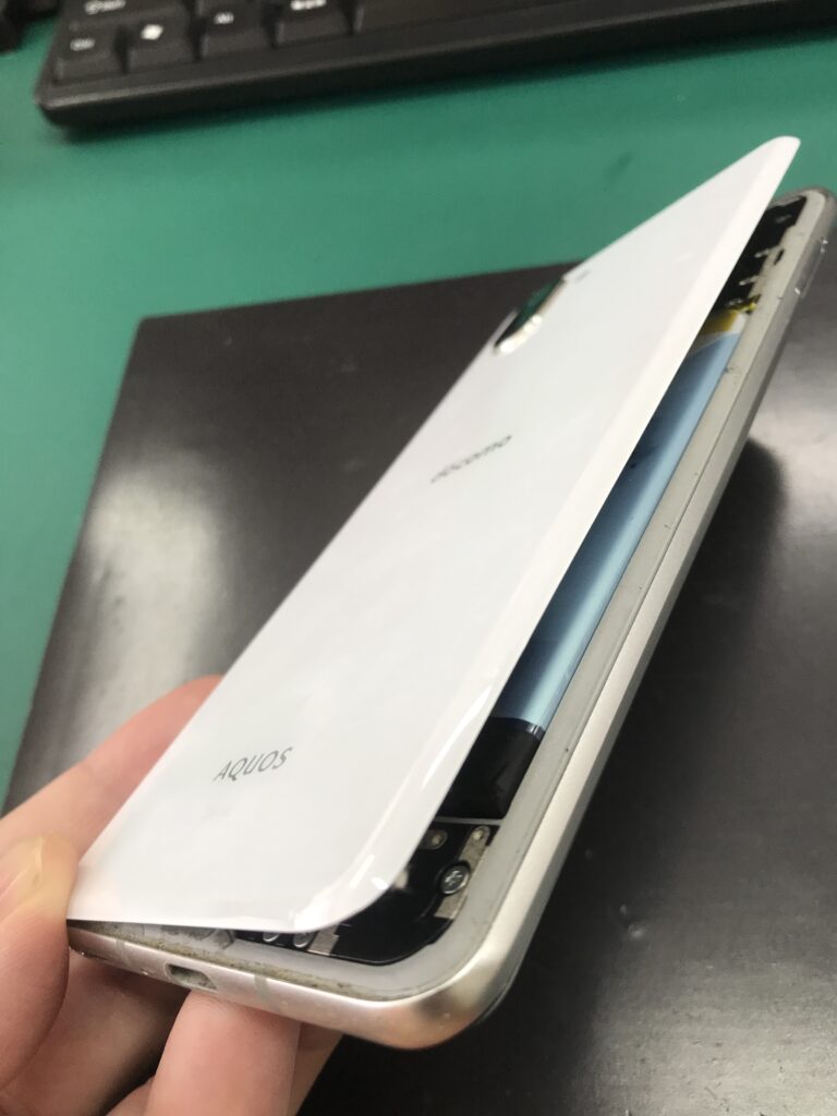 今回はこちらのAQUOS R3のバッテリー交換修理をさせていただきました。