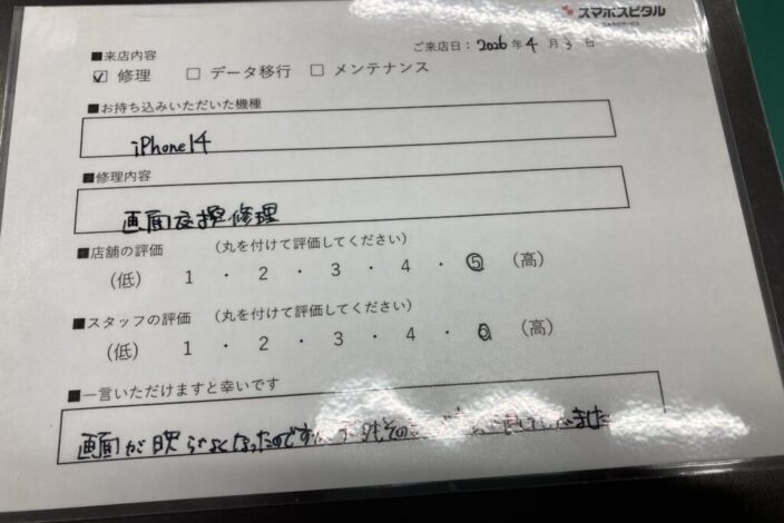 スマホスピタル 大阪梅田 【お客様の声】東大阪市よりお越しのお客様iPhone12Pro画面交換をさせて頂きました。