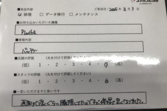 【お客様の声】京橋市よりお越しのお客様Pixel6バッテリー交換修理をさせていただきました。