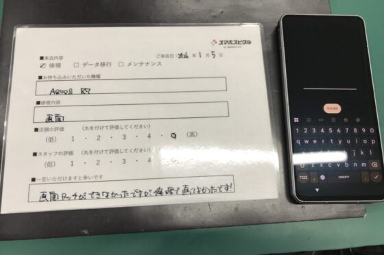 【お客様の声】豊中市よりお越しのお客様AQUOS R7画面交換修理をさせていただきました。