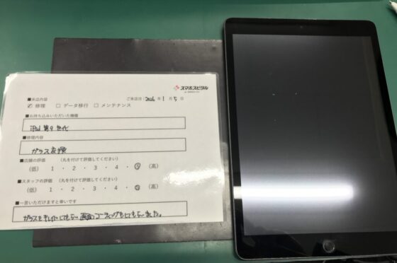 【お客様の声】東大阪市よりお越しのお客様iPad第9世代ガラス交換修理をさせていただきました。
