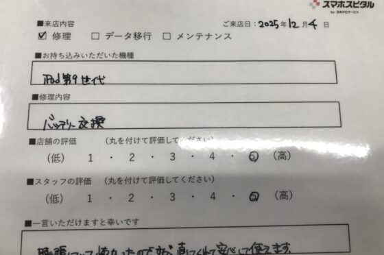 弊社の修理サービスをご利用いただいきましたお客様の声です。