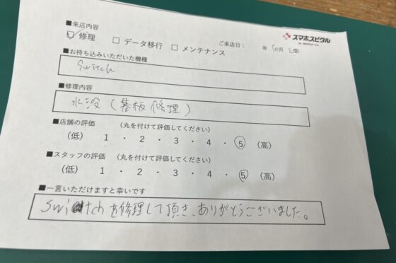 【switch】お客様よりコメントを頂きました