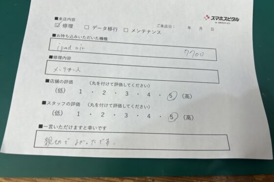 【ipad】お客様よりコメントを頂きました!