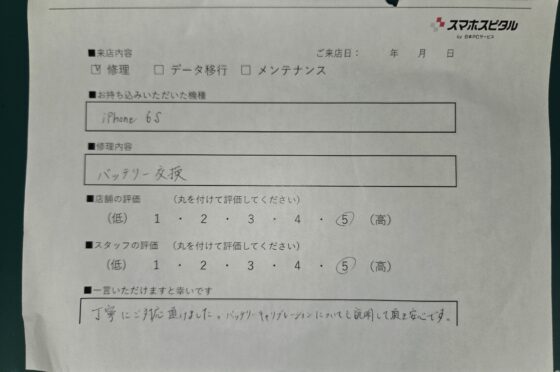弊社の修理サービスをご利用いただいきましたお客様の声です。