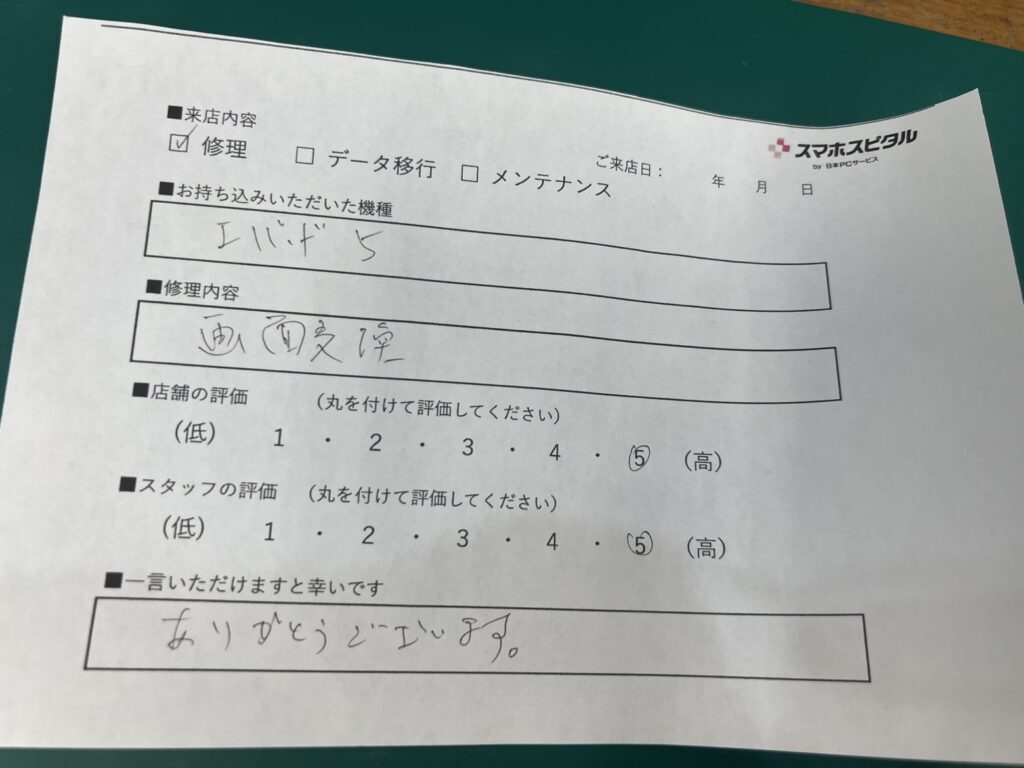 スマホスピタル横浜駅前 【iPad 5画面交換修理】お客様よりコメントを頂きました!