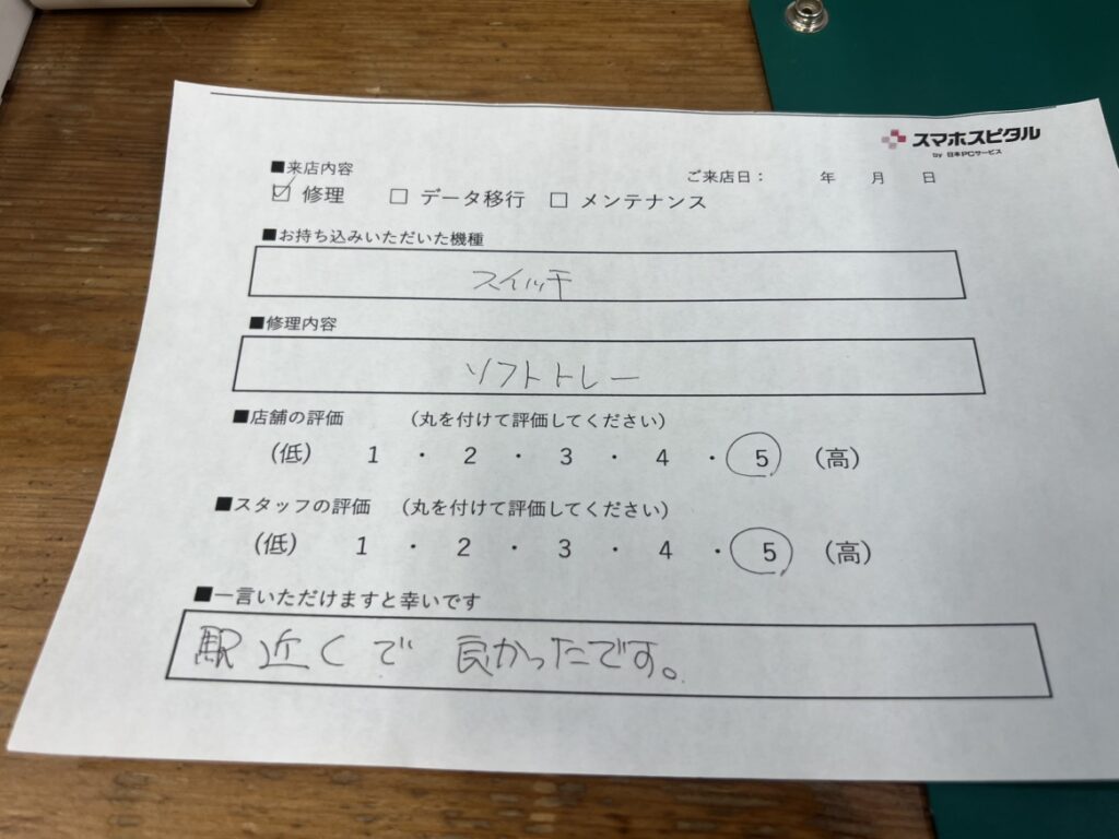 スマホスピタル横浜駅前 【switch】お客様よりコメントを頂きました!