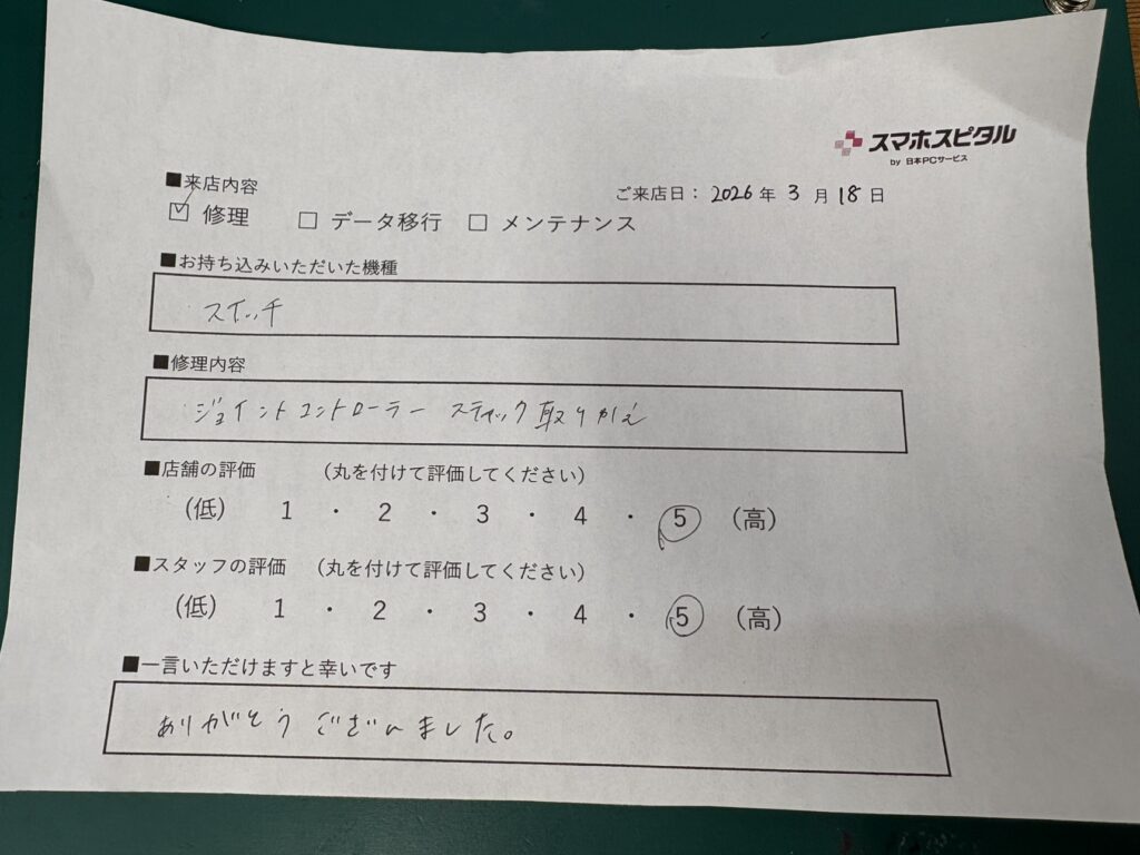 スマホスピタル横浜駅前 【ニンテンドーSwitch】お客様よりコメントいただきました